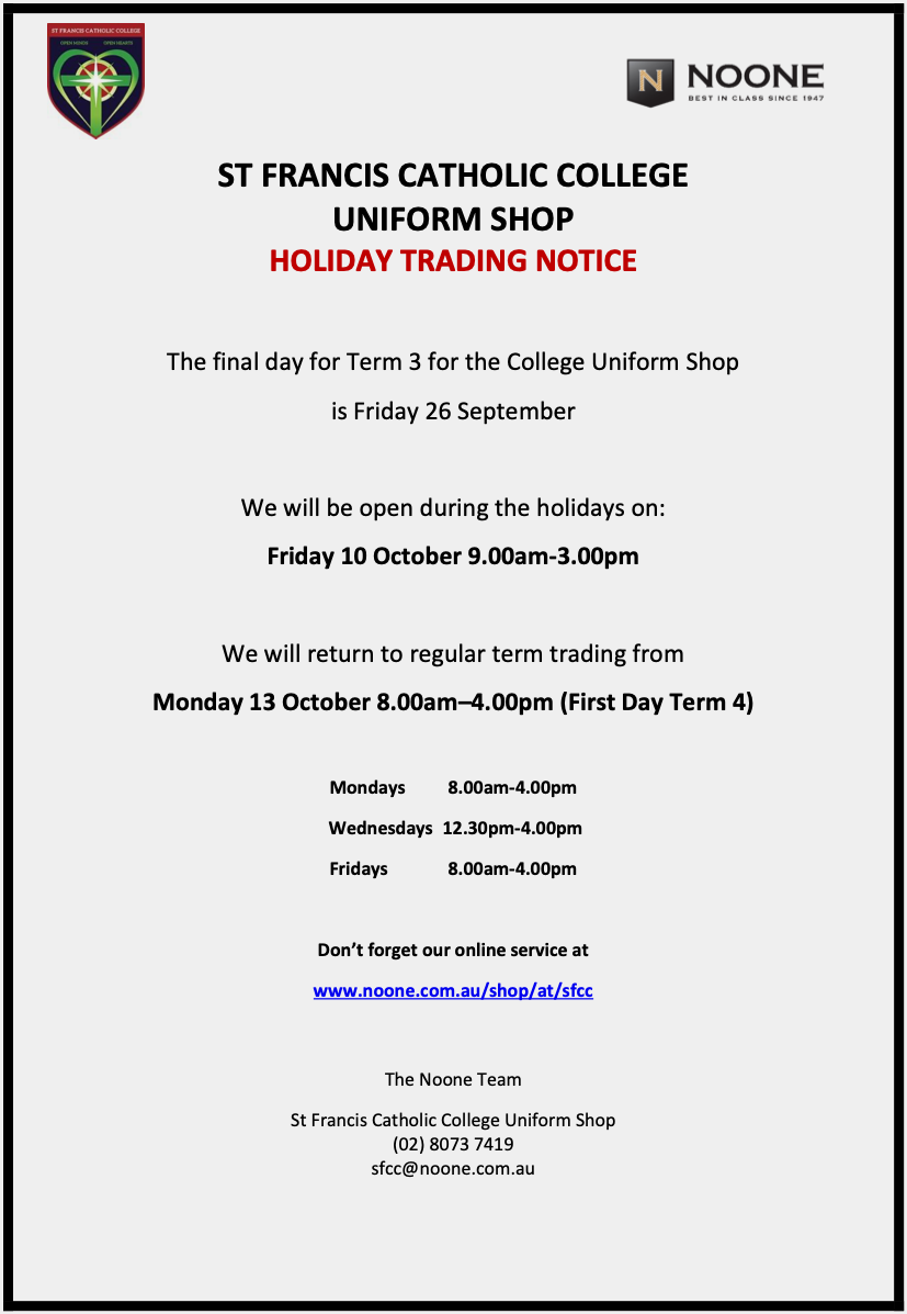 If you need to contact Noone you can do so on the Landline: (02) 8073 7419. Please note that this number is only manned during the times that the Uniform Shop is open.
